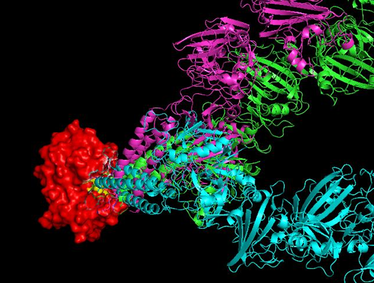 Protein-protein docking part was performed using ClusPro software, with additional information of dionain’s catalytic residues as the main interactor for the enzyme. The substrate used was fibrin in it’s full chain form (PDB ID: 2HLO), and the rest of the parameters were left default. The results showing a clear indication that Dionain, as the cystein protease, being predicted to interact with fibrin chain as shown in the figure. Among all of the predicted complexes, almost most of the complex that shows interaction made a great potential of dionain interacting with chain Gamma of the fibrin. This occurrence, however, still dominated by the Hydrophobic bond between the interaction of the dionain’s catalytic residues and gamma chain of the fibrin due to the size of the fibrin used. With these findings, we then proceed to check the interaction between Dionain and the domains of the fibrin.